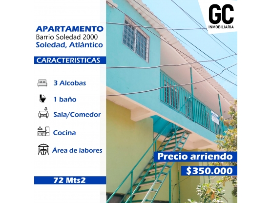 En el hermoso municipio de Soledad, en el departamento del Atlántico, se encuentra disponible para ti un apartamento ideal para alquilar, con una ubicación privilegiada que te brindará una excelente calidad de vida. Con un área total de 72 M2, este inmueble cuenta con todas las comodidades necesarias para que puedas disfrutar de cada espacio y sentirte como en casa.