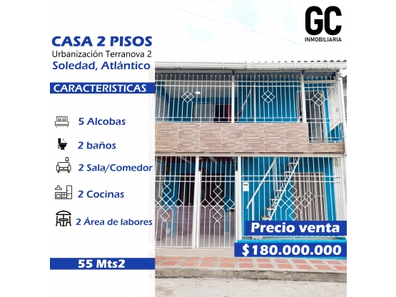 Se vende Casa de 2 pisos ubicada en la Urbanización Terranova 2 - soledad